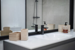 Die größere Wohnung umfasst zwei Schlafzimmer mit Bad en suite (eins mit freistehender Badewanne, eins mit Regendusche und Massagesteinboden), ein Gäste-WC, eine maßgefertigte Küche mit offenem Essbereich sowie einen lichtdurchfluteten Wohnraum mit Indoor-Garten, der auf die weitläufige Terrasse führt. Als besonderes Highlight verfügt sie zusätzlich über eine private Sauna.